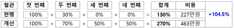 심장혈관 중재술은 4개 모든 혈관의 시술에 수가 산정을 하도록 하고 수가 또한 최대 270%로 대폭 높인다.