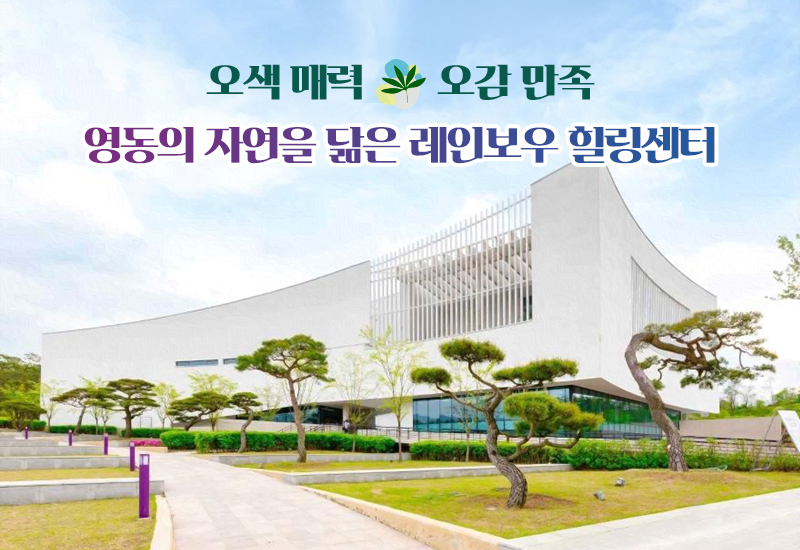 충북 영동은 충청도와 함께 전라도 경상도 등 세 개의 도가 접하고 있는 만큼 다채로운 매력이 가득하다. 브랜드 슬로건 또한 오색 매력을 갖춘 영동의 특색을 살린 ‘레인보우 영동’이다. 이곳에 지난해 7월 무지개색만큼 즐길 거리 가득한 웰니스 공간이 문을 열었다. 영동 레인보우 힐링센터가 그곳이다. 영동의 자연을 그대로 재현한 건축물과 심신의 건강과 즐거움을 가득 담은 공간은 머무는 것만으로도 마음이 편안해진다.